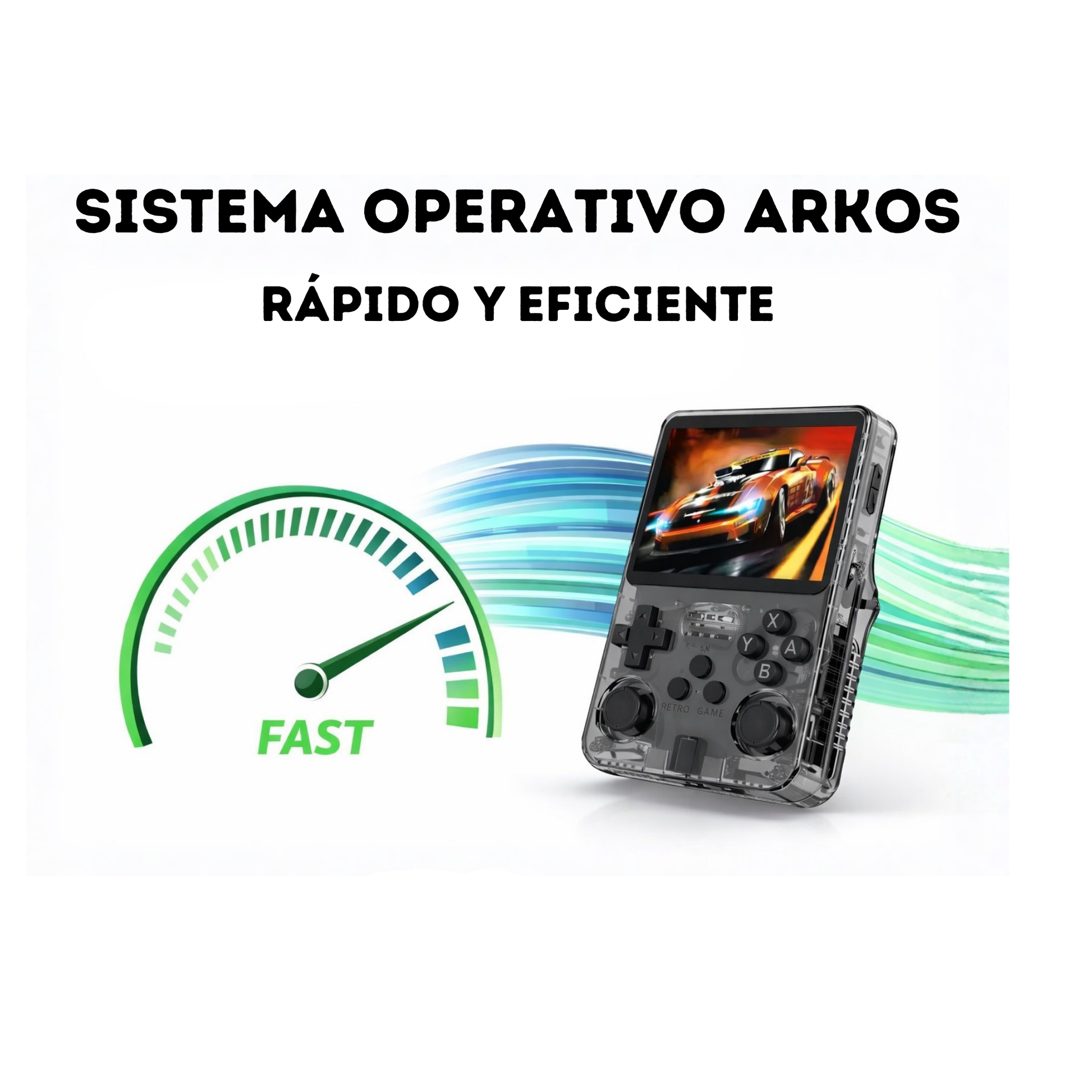 Funciona con el sistema Linux ArkOS de código abierto, garantizando un rendimiento fluido, gran estabilidad y compatibilidad con una amplia biblioteca de juegos clásicos.